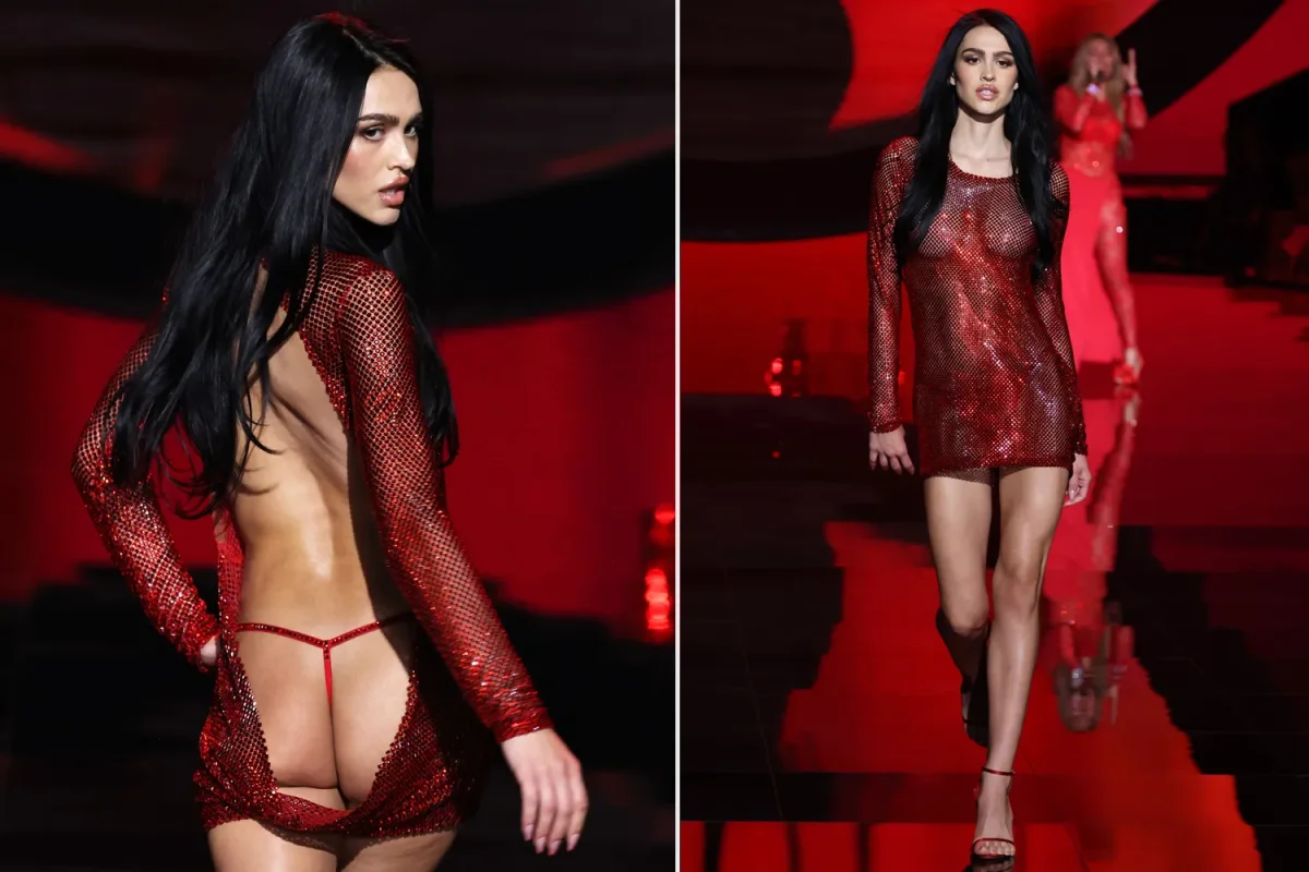 Siyah transparan detaylara sahip özel tasarım bir kostümle podyuma çıkan Amelia Gray, yürüyüşü ve özgüveniyle büyüledi. Defilenin en dikkat çekici anı ise Gray’in arkasını dönmesiyle yaşandı. Sosyal medyada paylaşılan o anlar, kısa sürede milyonlarca izlenme aldı.