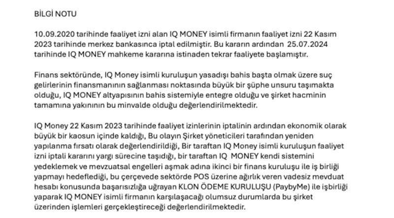 IQ MONEY ÖDEME KURULUŞU - KLON ÖDEME KURULUŞU