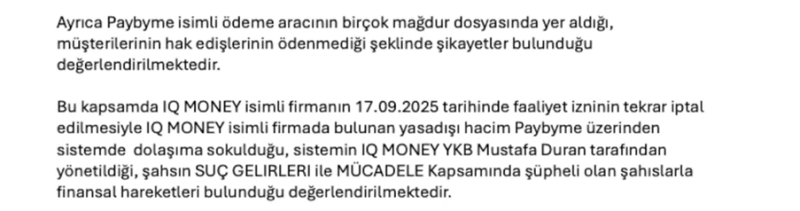 Emniyet Genel Müdürlüğü tarafından hazırlanan bilgi notu Mustafa Duran Suç Örgütü IQ Money