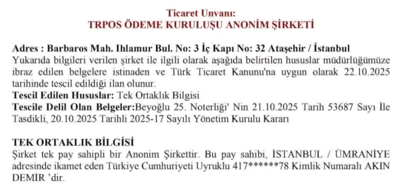 Ne olabilir: POS/ödeme terminal sağlayıcısı.