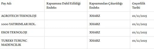 Bu şirketlerin hisseleri 1 Aralık 2025 itibarıyla BIST Halka Arz Endeksi’nde yer almayacak.