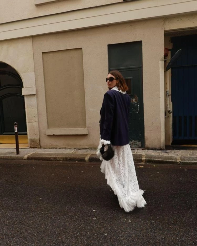 Bir çekim için kamera karşısına geçen Afra Saraçoğlu, siyah iç çamaşırlarının üstüne beyaz dantel detaylı uzun bir hırka ile siyah bot ve ceket tercih etti.