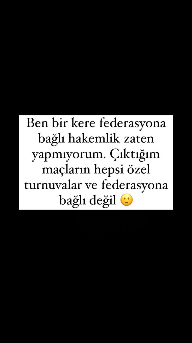 “Ben bir kere federasyona bağlı hakemlik zaten yapmıyorum. Çıktığım maçların hepsi özel turnuvalar ve federasyona bağlı değil.