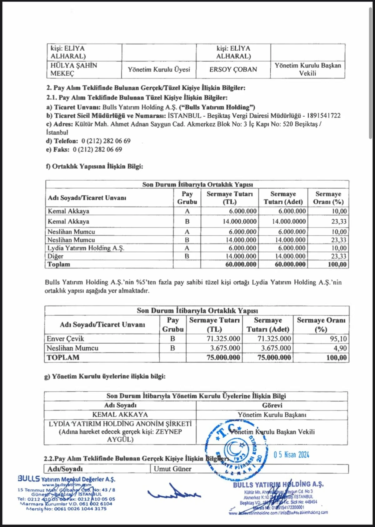 2021’de Enver Çevik Lydia Yatırım Holding’in sahibi MİPAZ’ı devraldı. Kemal Akkaya’yla ortak oldu ve şirketin ismi Lydia Holding olarak değiştirildi. Kemal Akkaya’nın yönetim kurulu başkanı olduğu Bulls Yatırım’la ortaklık kuran bu şirkete Kültür ve Turizm Bakan Yardımcısı Batuhan Mumcu’nun eşi Neslihan Mumcu’nun da ortak olduğu ortaya çıktı.