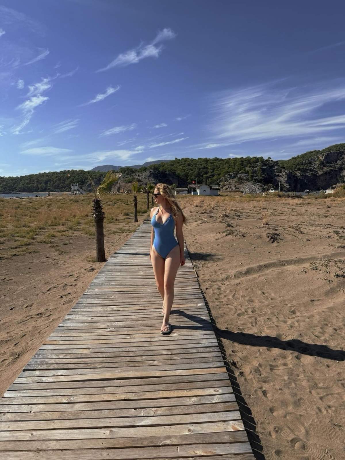 Sonbaharın ortasında olsak da mavi mayosuyla peş peşe pozlar veren Serel Yereli tatil kareleriyle beğeni topladı.