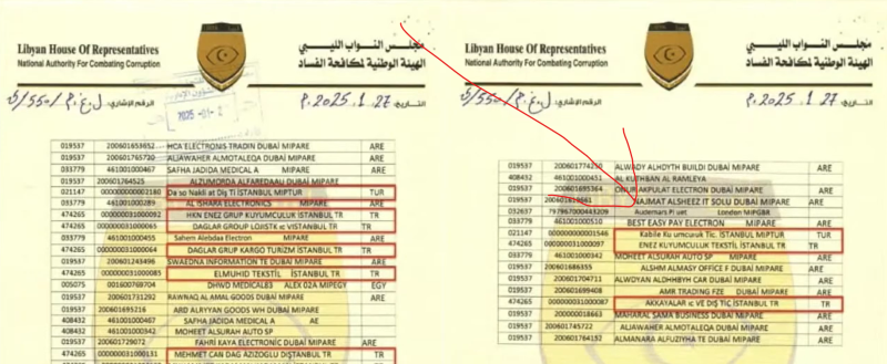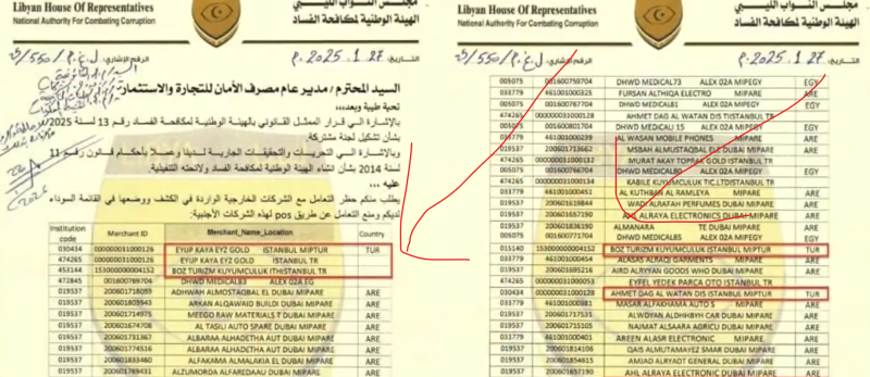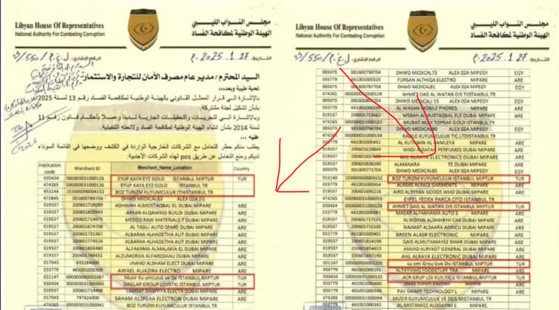 Libya Temsilciler Meclisi’ne bağlı Yolsuzluklar Mücadele Yüksek Kurulu, Türkiye ile Libya arasında faaliyet gösteren ve POS cihazları üzerinden ihracat yapıyormuş gibi göstererek kara para akladığı iddia edilen şirketleri içeren kapsamlı bir liste yayınladı.