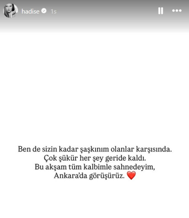 İşlemlerin ardından serbest bırakılan ünlü oyuncu sosyal medya hesabından açıklama yaptı. Ünlü oyuncu, "Ben de sizin kadar şaşkınım olanlar karşısında. Çok şükür her şey geride kaldı. Bu akşam tüm kalbimle sahnedeyim, Ankara'da görüşürüz" dedi.